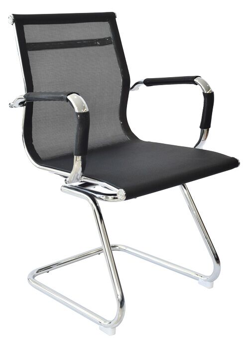 · Asiento y espaldar tapizado en malla nylon de alta resistencia. · Base cromada tipo trineo. · Brazos cromados y cobertores en malla nylon. · Utilizado en linea de oficina.